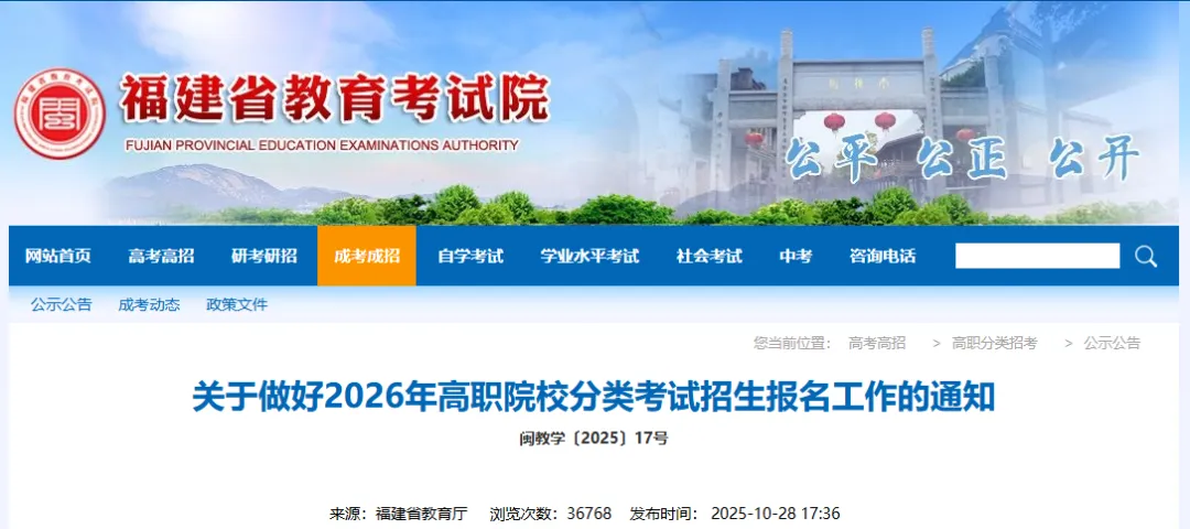 福建省2026年高职分类考试