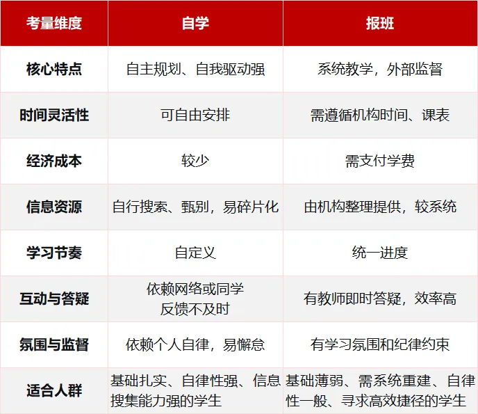 自学与报班没有绝对的好坏,只有适合与否。