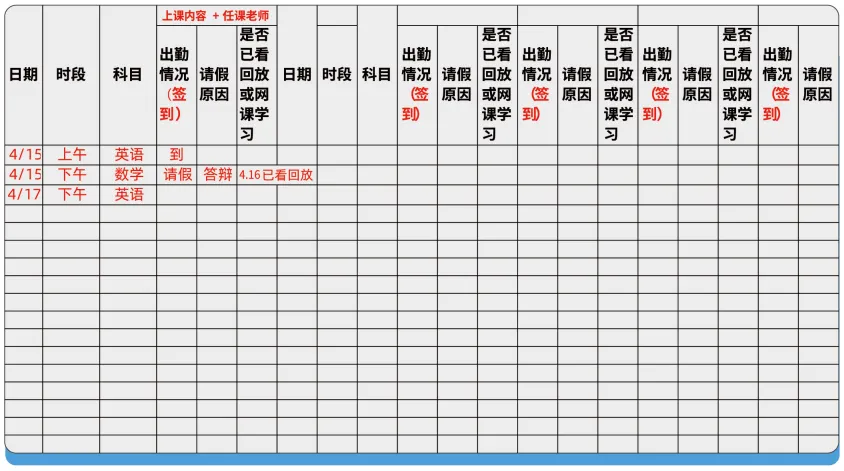 学员请假登记表