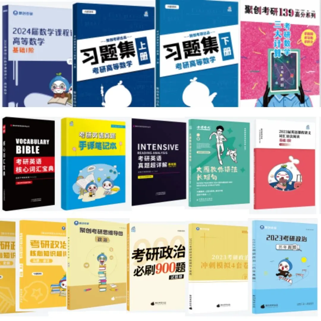 选择好的辅导资料等于成功了一半。我们全程为大家分阶段提供市面优质的辅导书籍和聚创考研内部高端教辅资料。比如英语词汇、英语真题讲义、数学习题集、基础题集、典型重点题集、真题集、考试分析手册等等。专属场地,上百个沉浸式自习位,独立背书室,休闲研讨区。自习时安静无噪声,背书时肆意朗读,研讨随心交流。室内干净整洁,空气流通,配有空调、饮水机等设备,网络全覆盖,网课随心看。