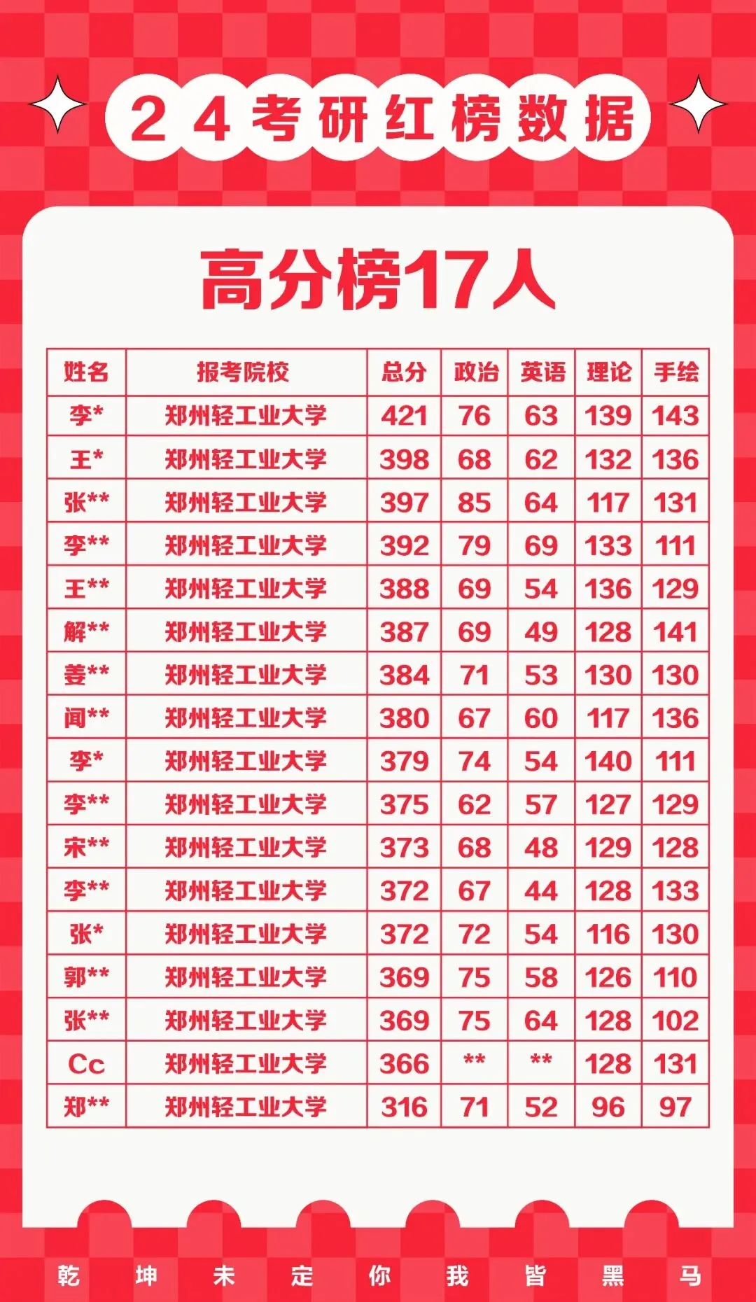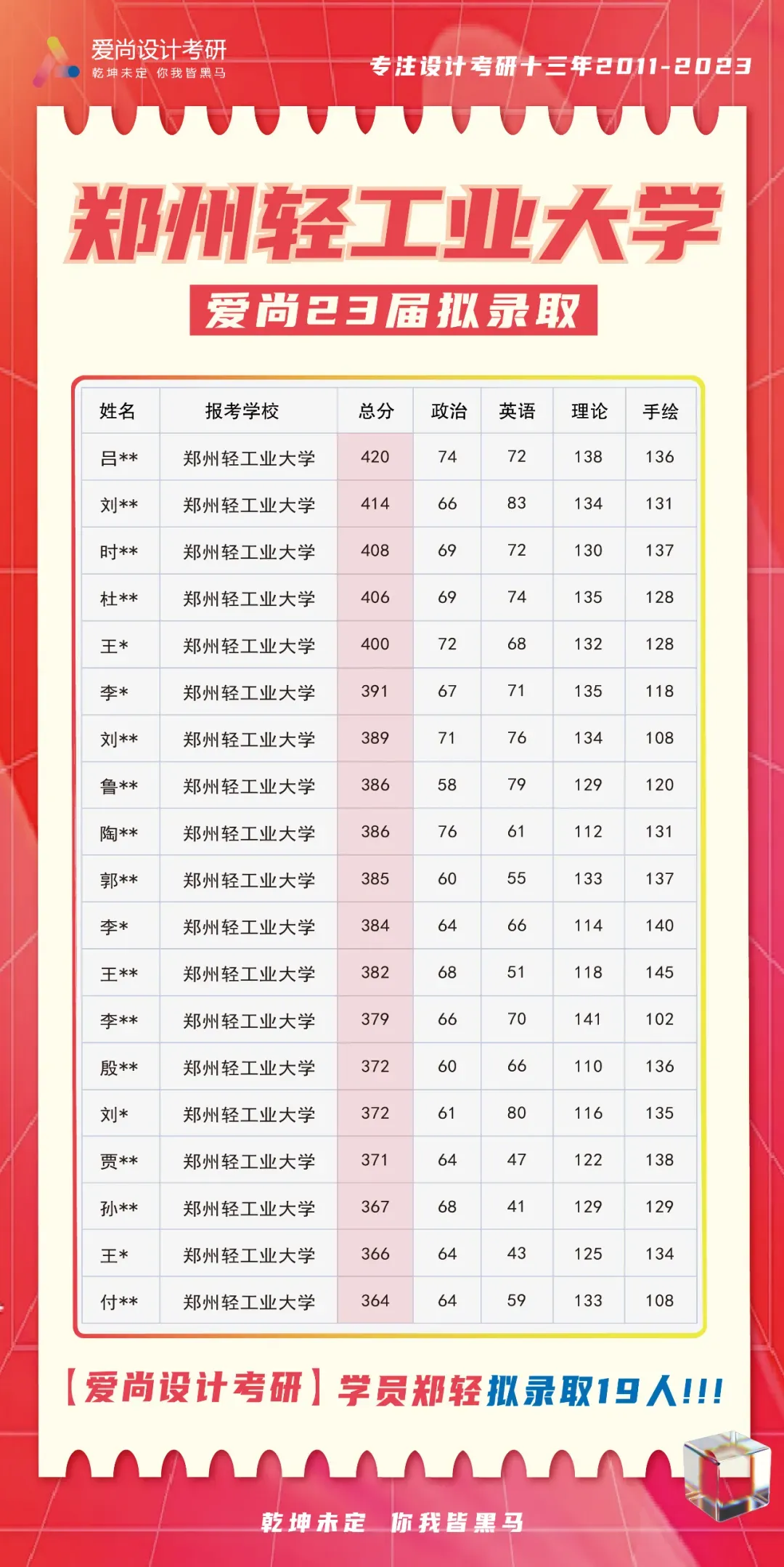 郑州轻工业大学 经验分享|视觉传达初试381分!手绘131!学姐说:努力不⼀定有好结果,不努力⼀定没有好结果。