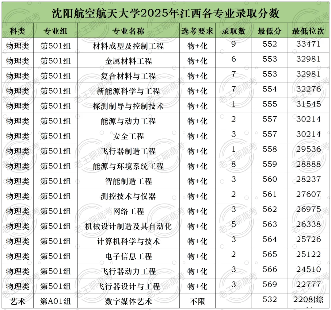 沈阳航空航天大学2025年江西省各专业录取分数线!