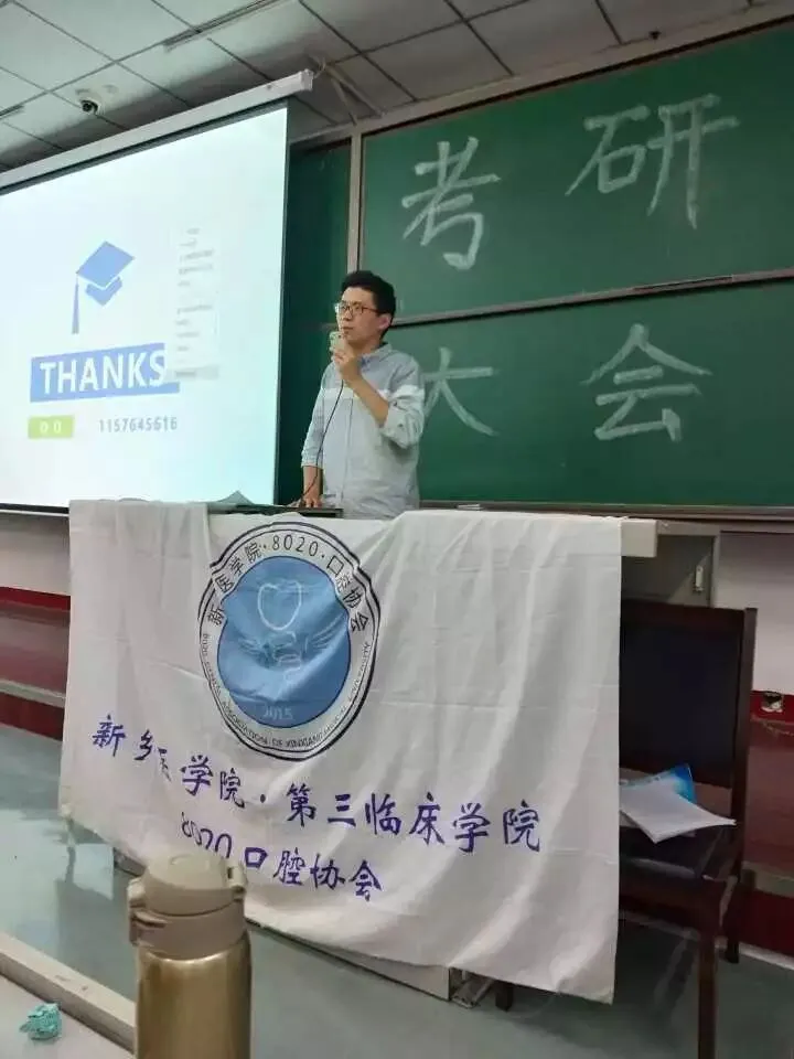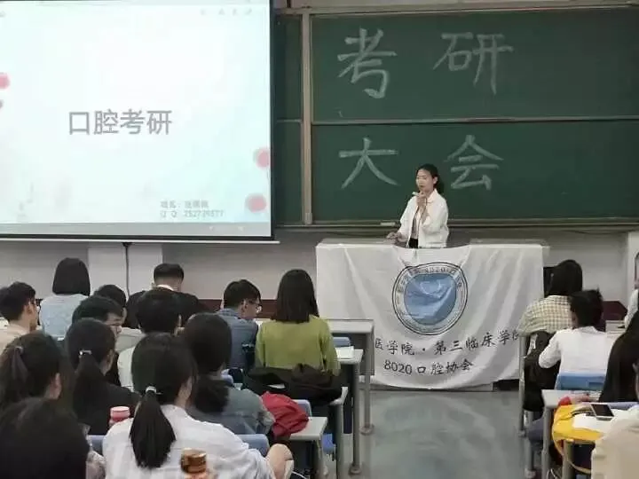 为给广大同学提供交流分享考研经验的机会,帮助备考同学们更好更高效学习,了解到更多考研相关知识,5月9日晚七时许,我校8020口腔协会在3401教室举办了口腔考研经验交流大会。我院赵晓生老师、张海强老师出席此次会议并发表讲话,五位14级口腔专业考研成功上岸的同学依次上台分享经验,并为备考的同学们解答相关问题。