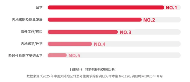 别以为雅思只属于留学党!据英国文化教育协会发布的《2024-2025中国大陆地区雅思考生成绩大数据报告》最新数据统计,“国内求职及职业发展”大陆学生备考雅思的第二大原因,雅思成绩对于接下来的考研复试、求职就业、考公考编,出国深造…都大有帮助!