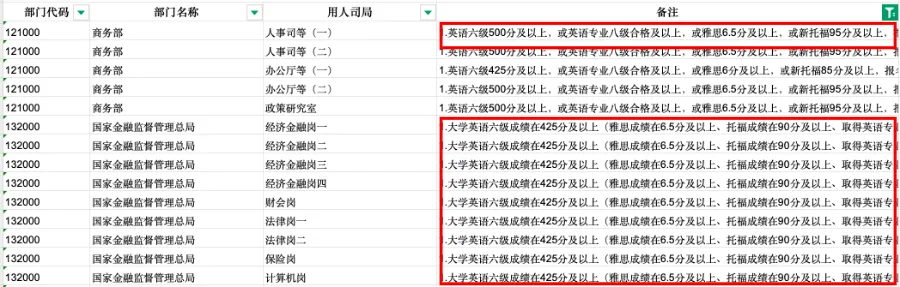 ✅ 中央国家行政机关省级以下直属机构:1676个岗位要求或承认雅思托福成绩;