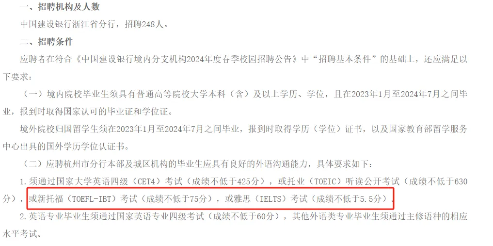 在部分事业单位招聘时就明确表示,要求雅思成绩至少在6.0/6.5分及以上。