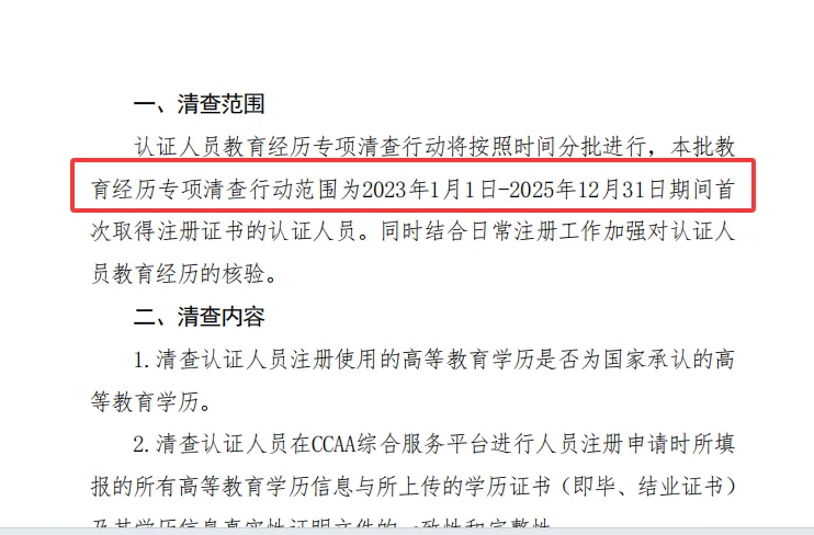 别以为这是走过场!人家玩的是 “分批重点清查 + 日常常态化核验” 双保险,精准锁定 2023-2025 年首次注册人员,学历真假、信息一致与否查得明明白白,对假学历直接零容忍,主打一个 “从源头挤干行业水分”,让认证圈回归 “真本事说话” 的本质,纯纯 “行业净化局”!
