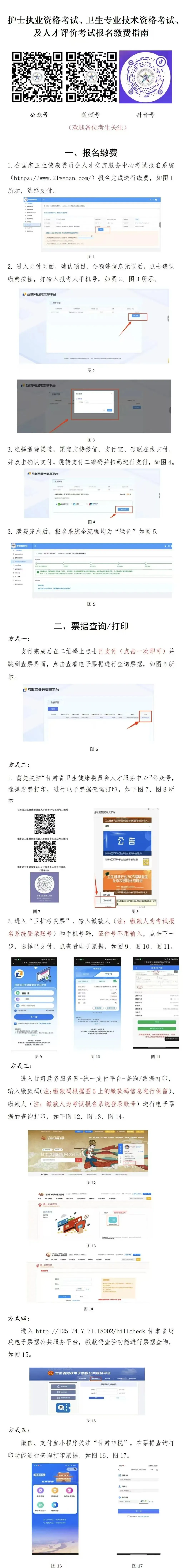 (一)请考生关注甘肃省卫生健康委员会人才服务中心微信公众号,了解缴费流程及考试动态。