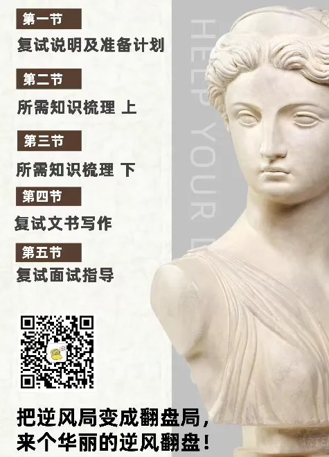如果你需要更详细的复试准备,复试面试指导等,可以联系报名我们的复试课程~