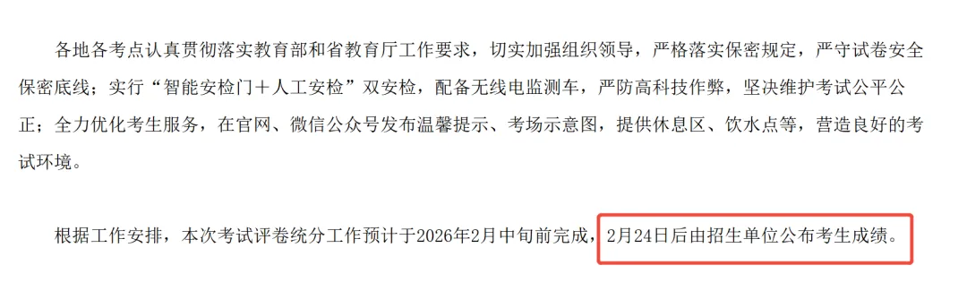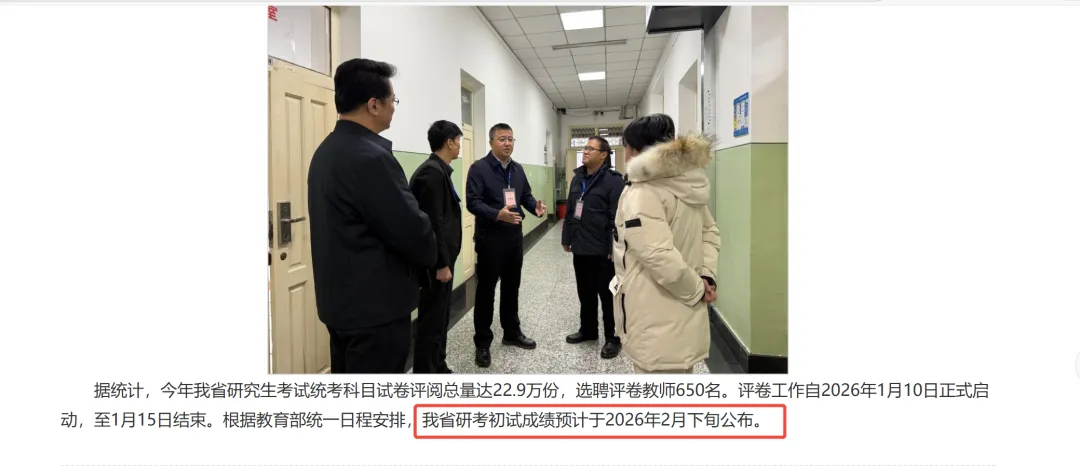 安徽省招生考试院发布公告称:“2026年全国硕士研究生招生考试初试成绩将于2月下旬公布。”