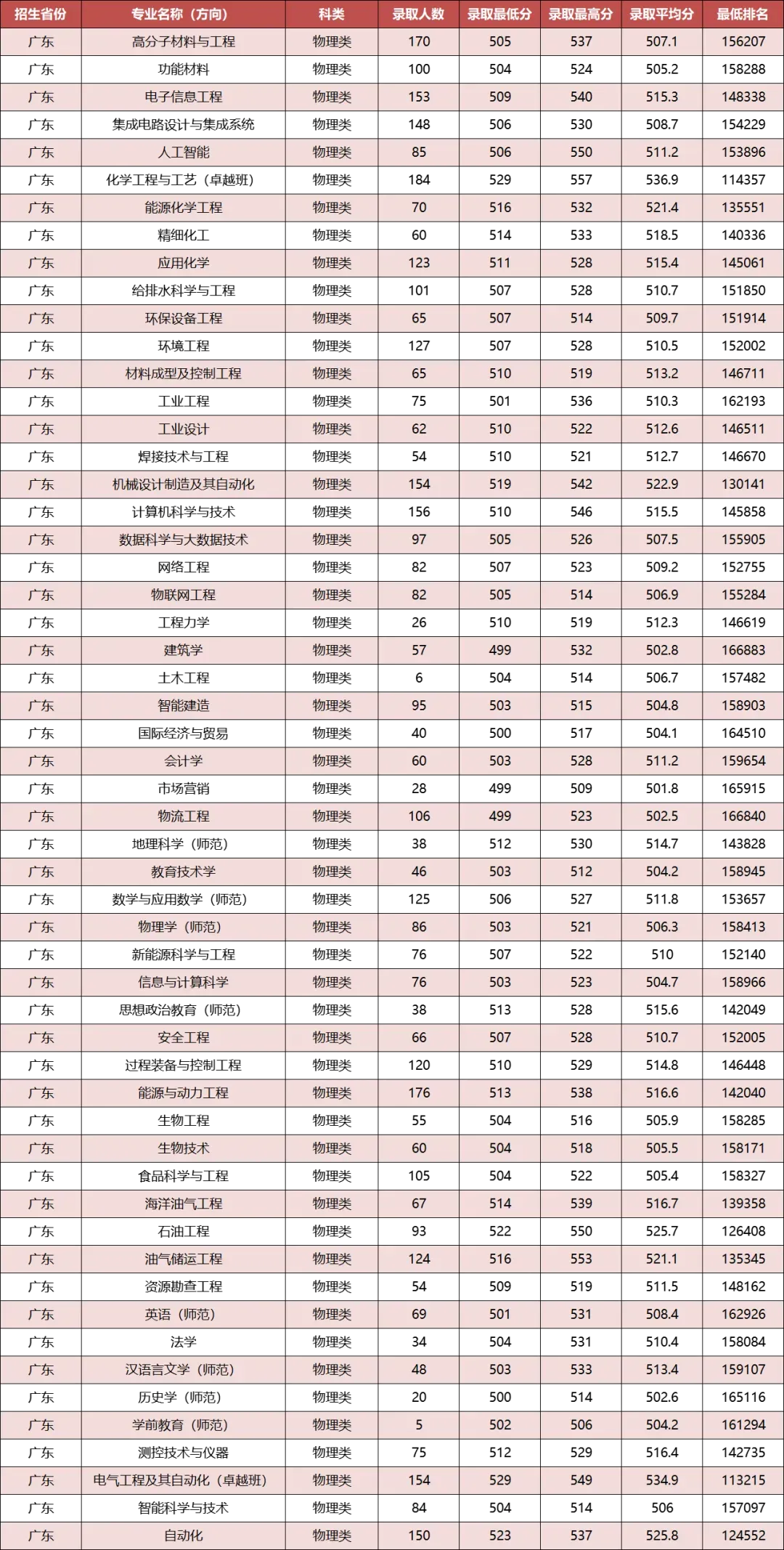 (温馨提示:最终录取数据以广东省教育考试院公布为准)