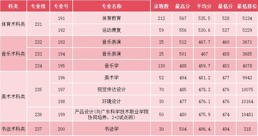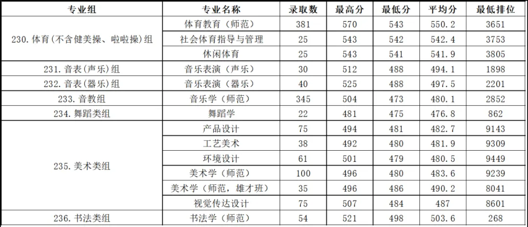 本科体育类统考已录取完成,共录取考生256名,录取最低综合成绩528分