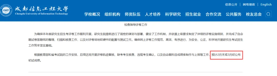 中国矿业大学发布,考生预计可于2月下旬查询初试成绩。