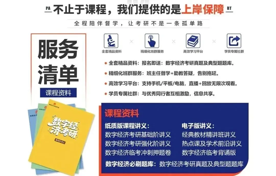 “804 数字经济专业基础”没有指定参考书,结合考试大纲推荐以下教材:说明:第一,高老先生《西方经济学》这本书流传在外一共六个版本:第四版、第五版、第六版、第七版、第八版、第九版。求稳,不管报考院校是否指定教材第几版,最佳复习方法是:随便找一个版本,比如第八版,先把手头版本教材学完,然后再学其他版本才有(手头版本教材没有),且考研爱出考题的知识点。第二,高老先生《西方经济学》教材正确的看书顺序是(先学微观经济学、再学宏观经济学):微观顺序:第3章、第4章、第5章、第6章、第2章、第7章、第10章、第8章、第9章、第11章宏观顺序:直接按照教材顺序学,从第一章学到倒数第二章李涛教授主编的《数字经济学导论》是数字经济领域的权威教材,2022年7月由高等教育出版社出版。这本书系统梳理了数字技术如何重塑经济形态,特别适合本科生和经管类课程教学。全书以“技术-市场-组织-增长”为逻辑主线,分为五部分:技术分析:聚焦互联网、大数据、人工智能等数字技术的经济学特征宏观增长:探讨数字经济核算与数据资本驱动的增长机制李三希教授主编的《数字经济概论》是数字经济系列教材之一,由中国人民大学出版社于2023年出版。第一,内容涵盖广泛:本书系统介绍数字经济领域的基础知识,包括平台经济、数字竞争、数据要素、大数据与算法、区块链、数字经济包容性发展、企业数字化、产业政策、网络效应和兼容性、数字货币、数字经济测算、监管等核心主题。第二,学术权威性高:李三希教授是中国人民大学经济学院教授、博士生导师,数字经济研究中心主任,研究领域聚焦信息经济学、产业组织理论和数字经济,曾获国家高层次人才计划等荣誉,其学术成果发表于《经济研究》《管理世界》等国内外权威期刊。第三,考研适用面广:众多高校(特别是名校)数字经济专业将本书作为考研指定教材,比如:中国人民大学、浙江大学、武汉大学、湖南大学、华东师范大学、上海财经大学等,考这些院校,一定要好好学这本教材。郑炳丨经济学考研资深辅导专家