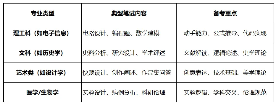 (1)专业核心课程:针对报考专业,考察主干课程的基础理论与应用。例如:计算机专业考数据结构+算法,经济学考宏观/微观经济学,文学考文学史+作品分析。