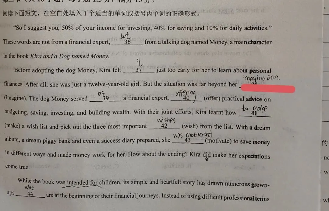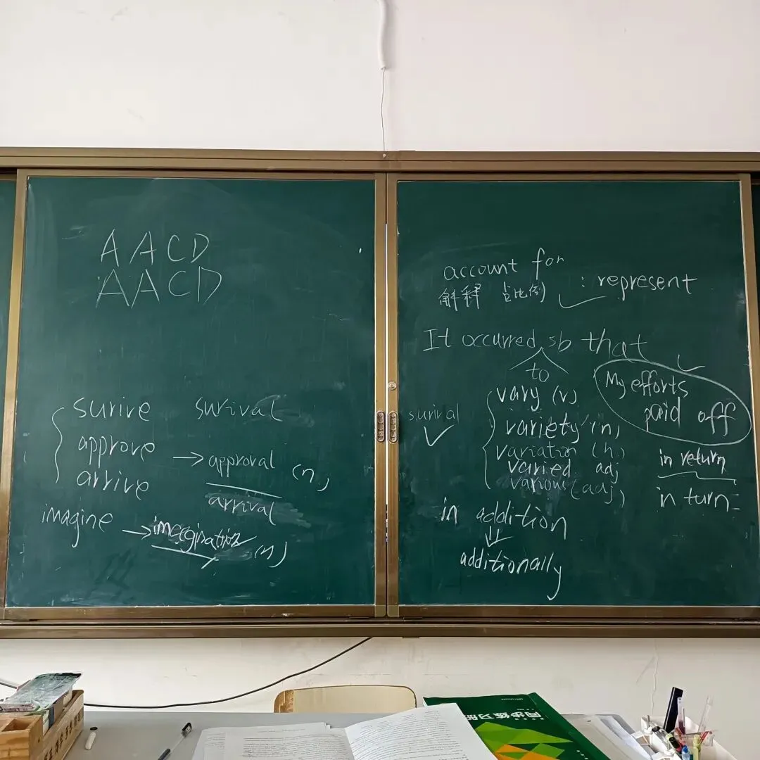 练习册的习题中出现了account for,Unit 4《My 100 Days With MSF》的空格要填写arrive的名词,下一套题的语法填空又写imagine的名词。