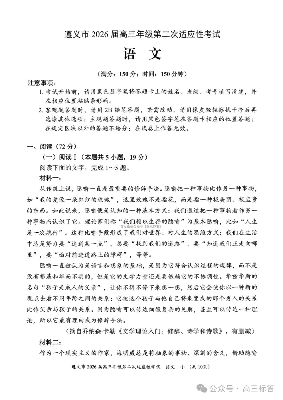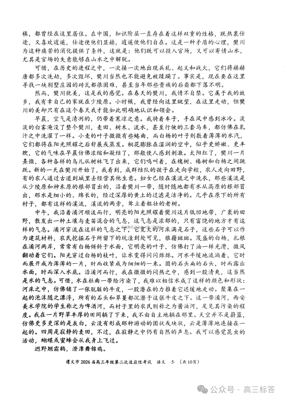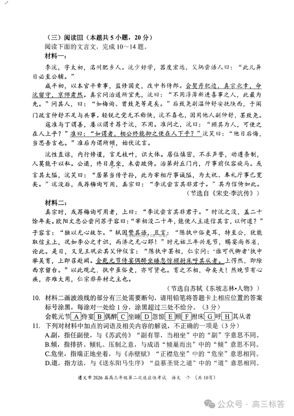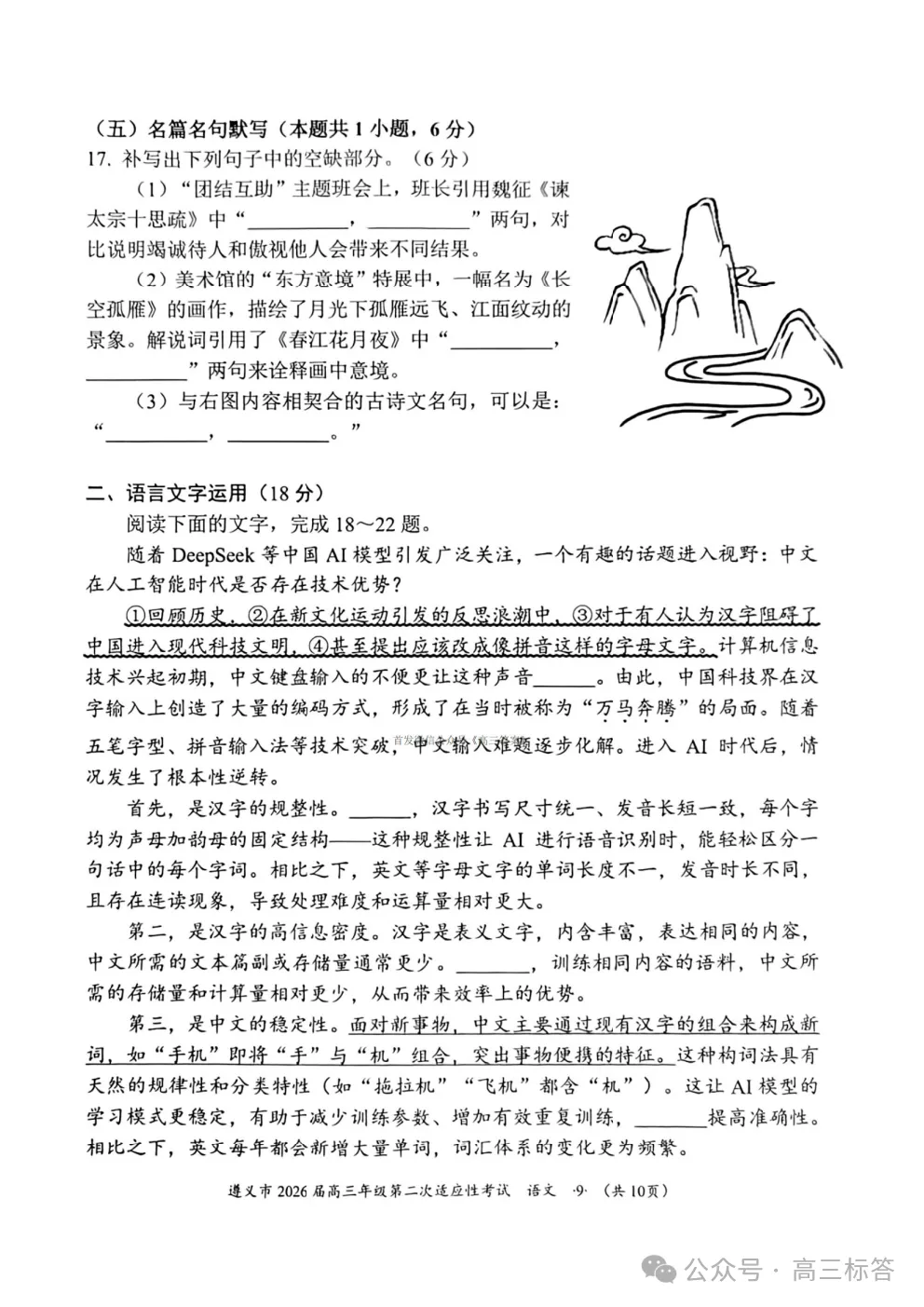 遵义市2026届高三年级第二次适应性考试语文答案