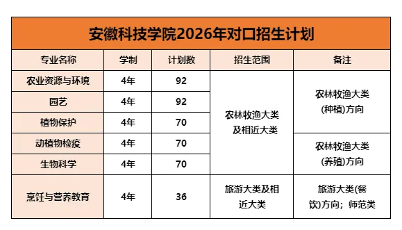 作为对口升学热门院校,安徽科技学院 2026 年总计划较 2025 年减少 10 人,核心调整集中在专业布局上。