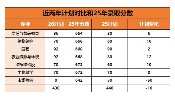 核心亮点:农林牧渔和旅游烹饪大类专业合计增加 40 人,适合相关专业中职生报考;市场营销专业停招,原意向考生需及时调整方向。