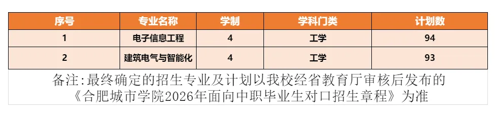 备注:最终招生专业及计划以安徽省教育厅下达为准。