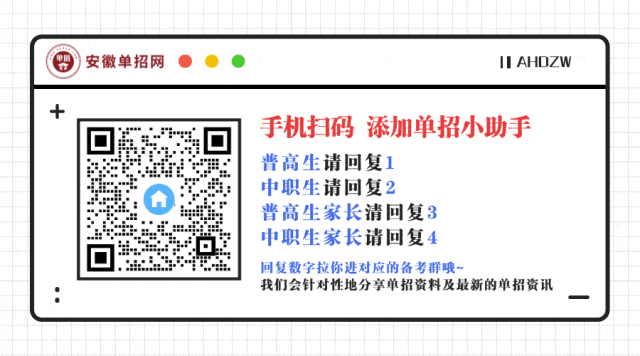 备考26安徽单招的同学家长们,扫描下方二维码添加小助手进群啦!单招最新资讯、最新考纲等资料,都会第一时间发布在群里哦~添加老师后,回复数字,会拉你进对应的备考群哦~