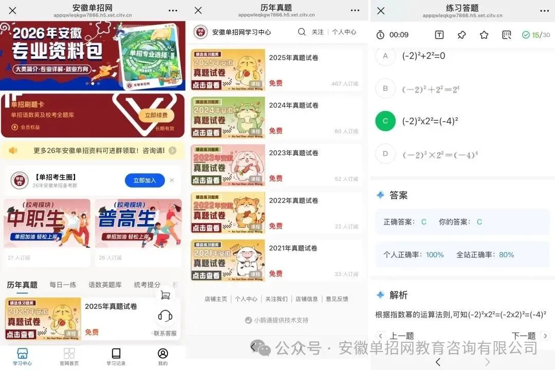 我们还开设了专为 2026 年安徽单招考生打造的刷题小程序,已经成为大家提升刷题效率、巩固核心知识点的必备神器!还不知道怎么用的同学,赶紧看过来,下面就给大家详细讲解使用方法!