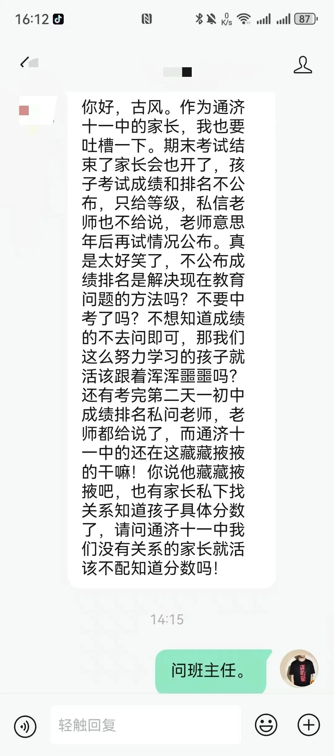 不得将考试结果在各类家长群传播。
