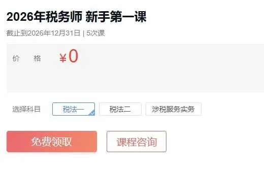 为了帮助大家更顺利的备考2026年税务师考试,我们为大家推出了免费课程>>>2026年税务师 新手第一课,大家可以点击文字或下方图片,免费获取,希望能够助力大家轻松备考,合理规划。
