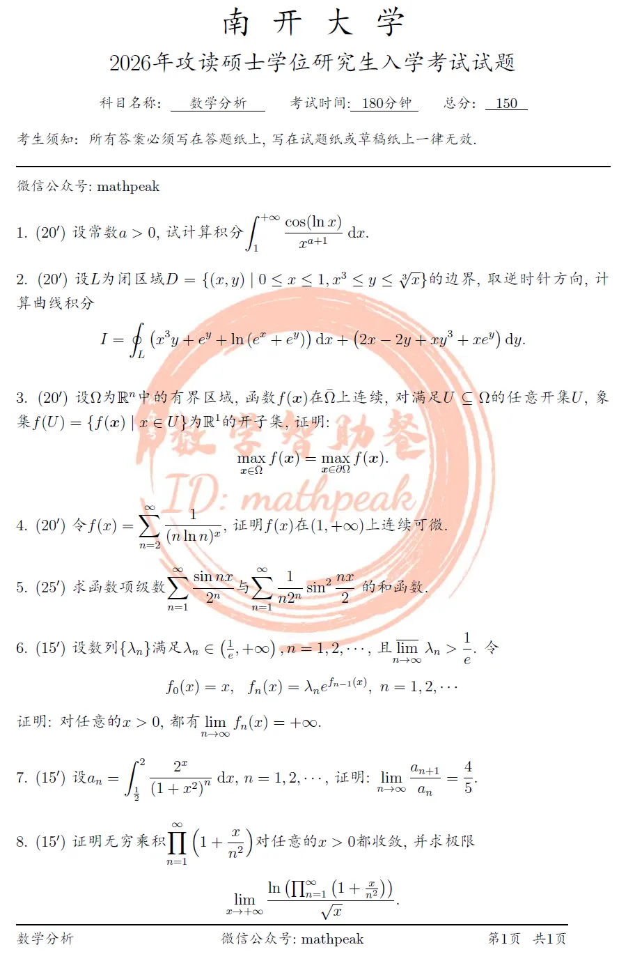 南开大学数学科学学院的前身为南开大学数学系,是由现代数学在我国最早和最有成效的播种人之一的姜立夫先生于1920年创立的,是当时中国大学的第二个数学系(算学系)。抗日战争时期,与北京大学数学系、清华大学算学系合组西南联大算学系(数学系),1946年复校返津。1952年全国院校调整,原天津大学数学系合并到南开大学数学系。1960年至1963年曾更名为数学力学系。1983年自动控制专业和计算机软件从数学系调出,与其它相关专业合组成立计算机与系统科学系。1985年,经教育部批准,由数学大师陈省身教授提议创办、并亲自担任所长的南开数学研究所(现陈省身数学研究所)成立。1997年5月7日,数学科学学院成立。