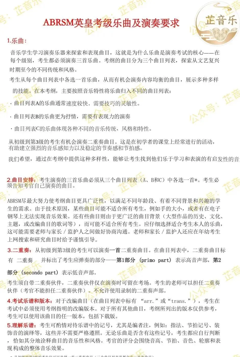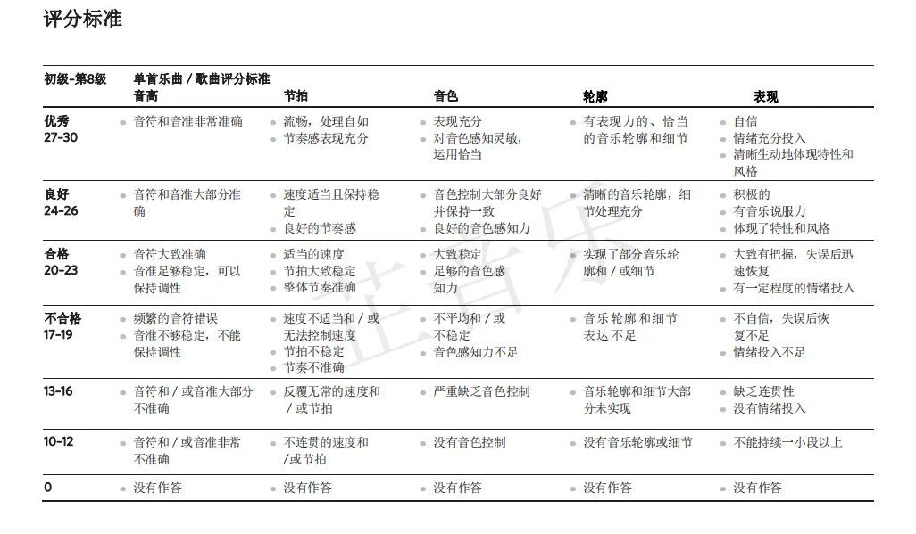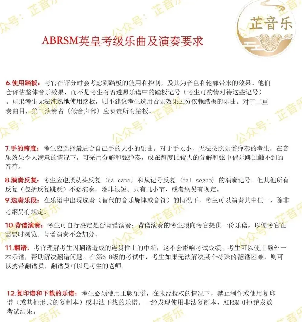 乐谱演绎,演奏反复,运用踏板,背谱,翻谱等具体演奏要求,请查看下列考纲。