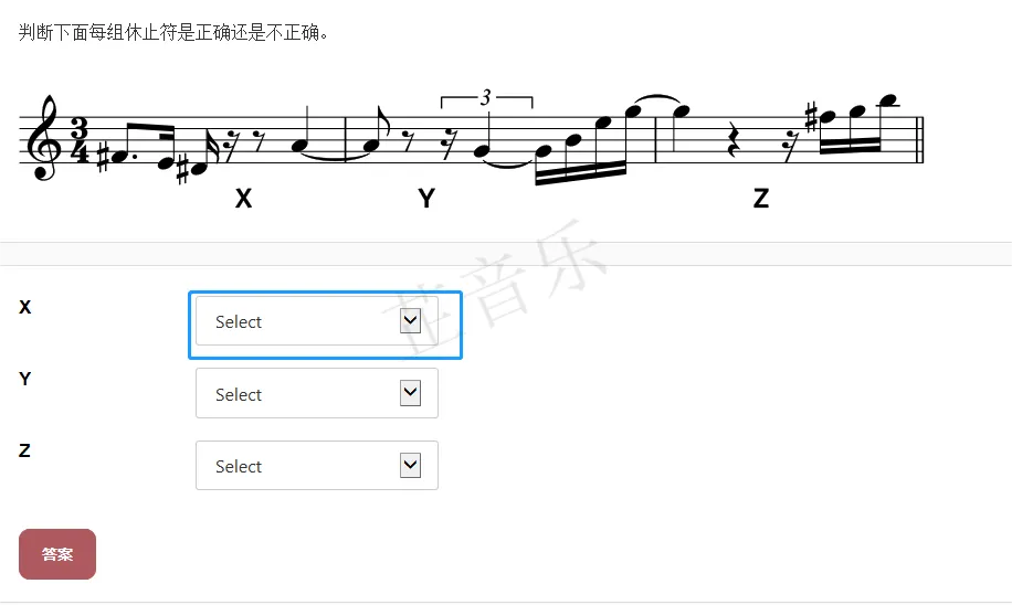 线上乐理考试有四种题型: