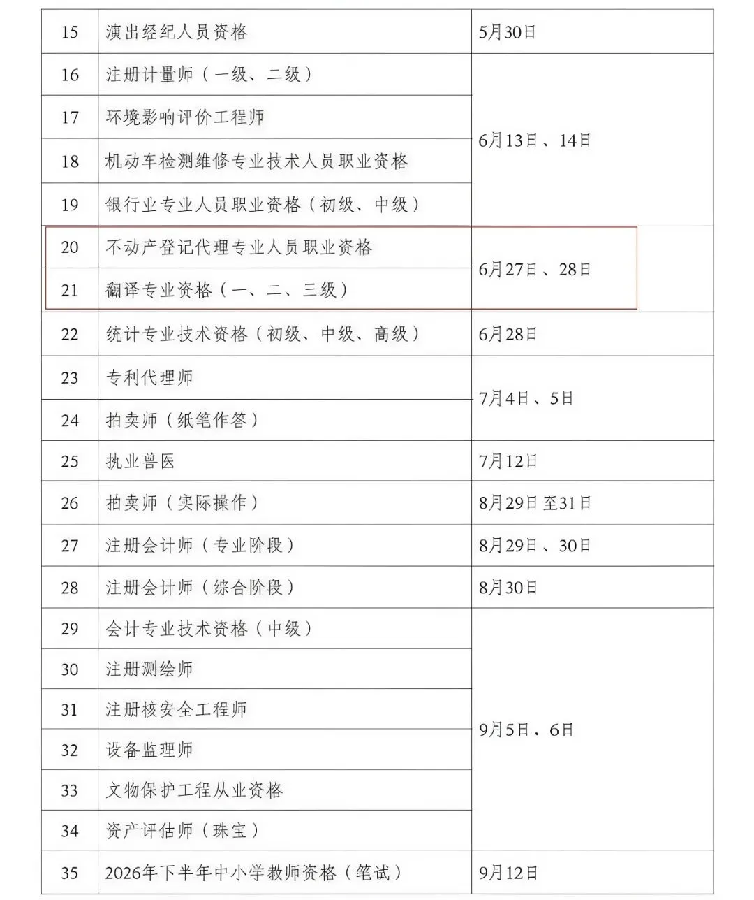 2026年考试计划已出