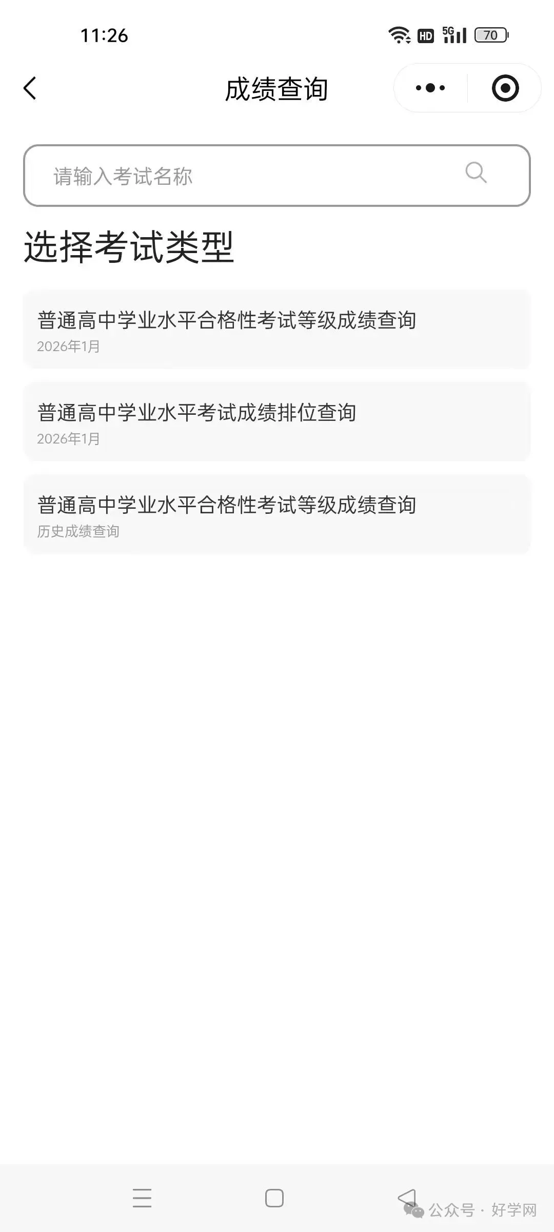 选择查询26年1月学考成绩
