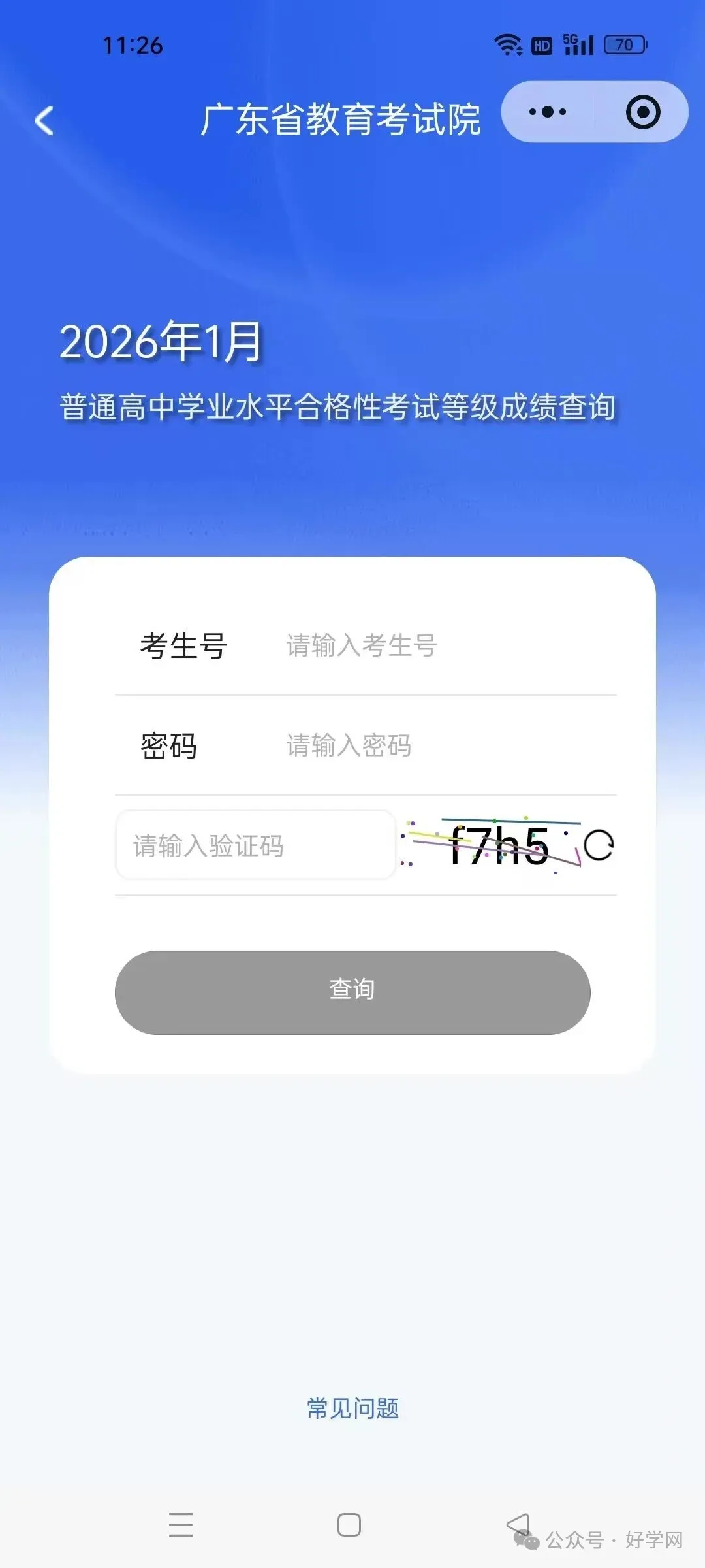 2026年1月呃广东省学业水平考试成绩查询入口!
