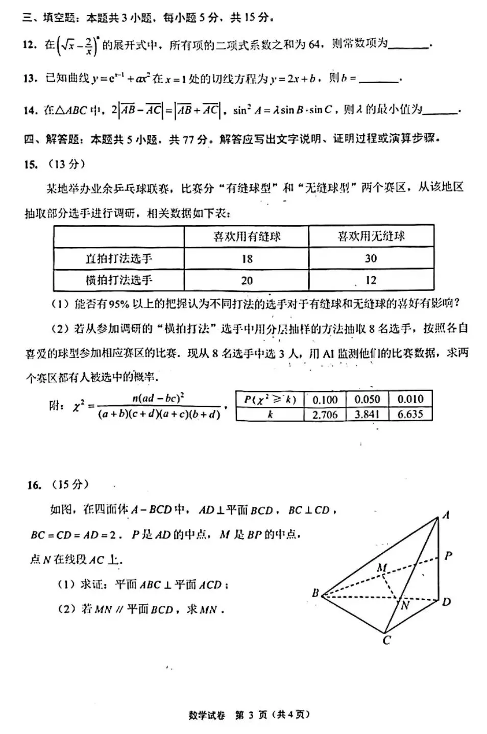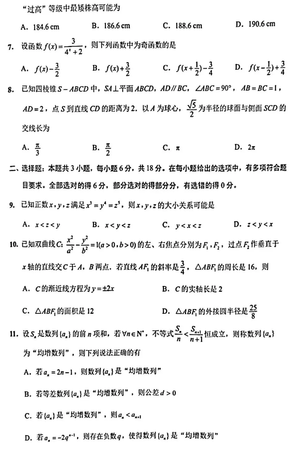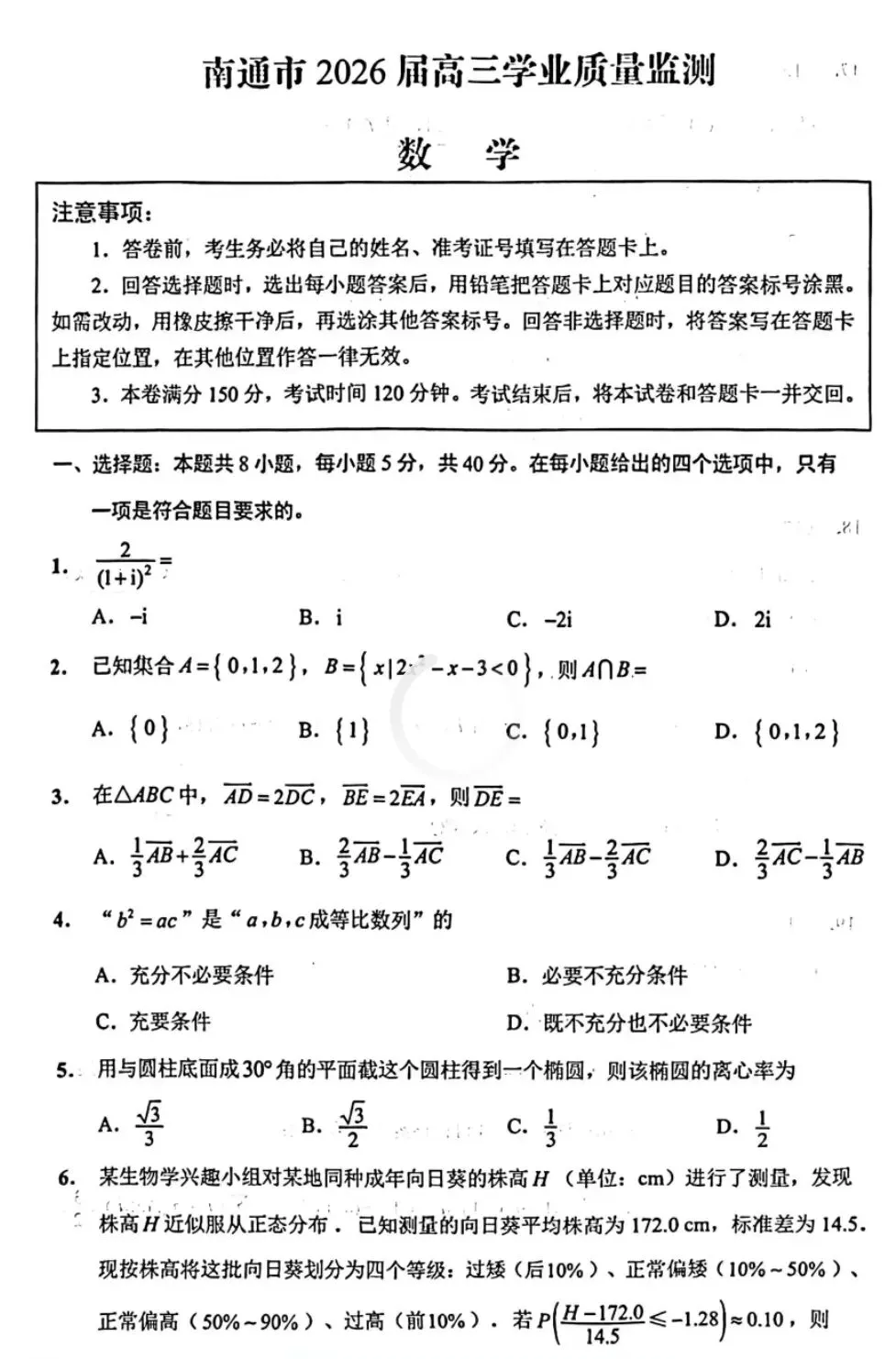 南通市2026届高三上学期期末考试数学试题+参考答案
