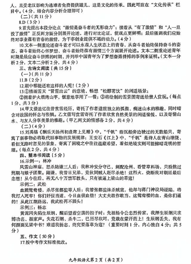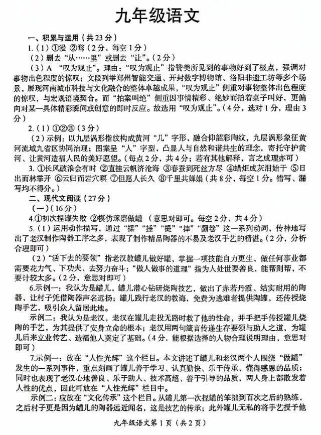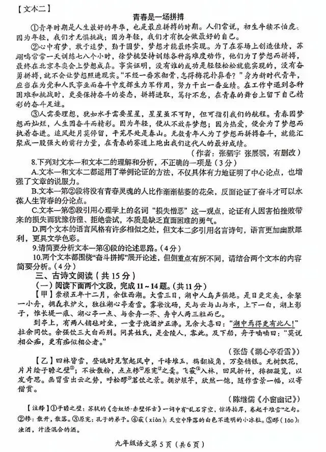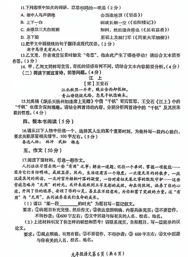 >2025九年级上期语文期末考试试题(洛阳卷)