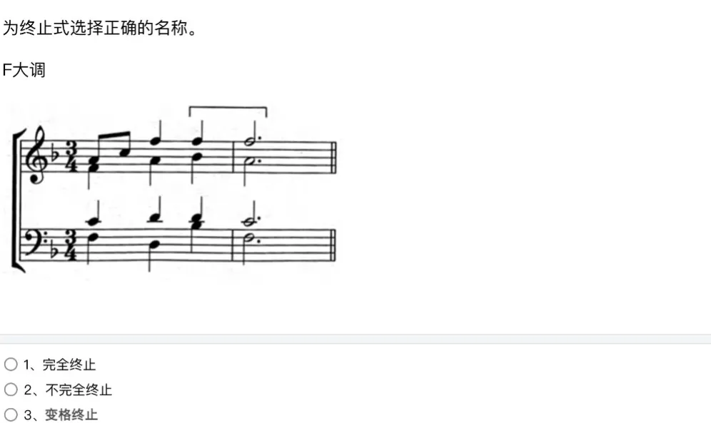 主要考查知识点:原位及转位三和弦、三种终止式的判断等。