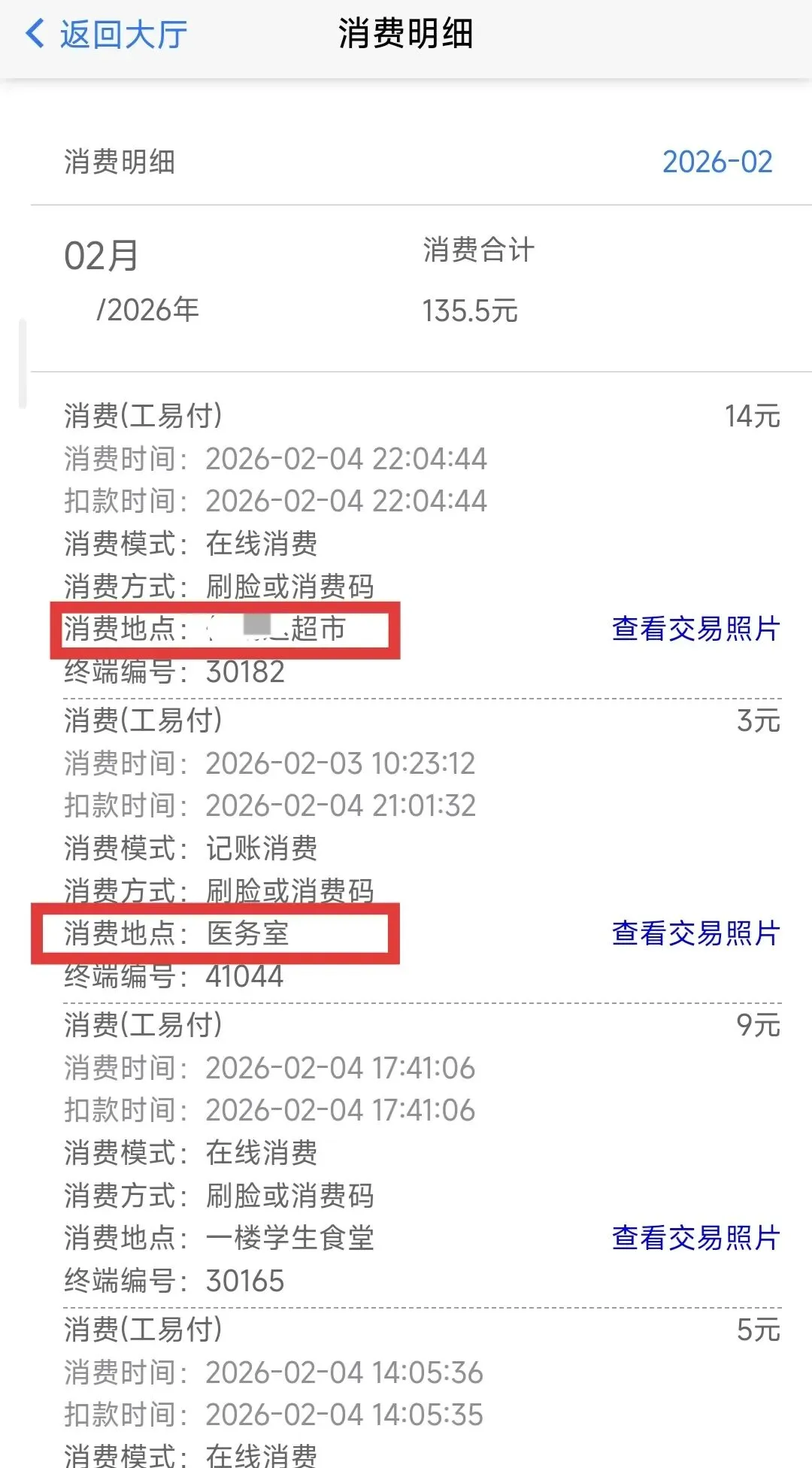 点开消费照片,人看起来倒还好,没有非常憔悴、疲乏的样子,状态尚可。然后看到10点时又去小卖部消费了14元,可能是饿了,吃点宵夜。能吃下东西就是好的,老母亲心里欣慰了一些。