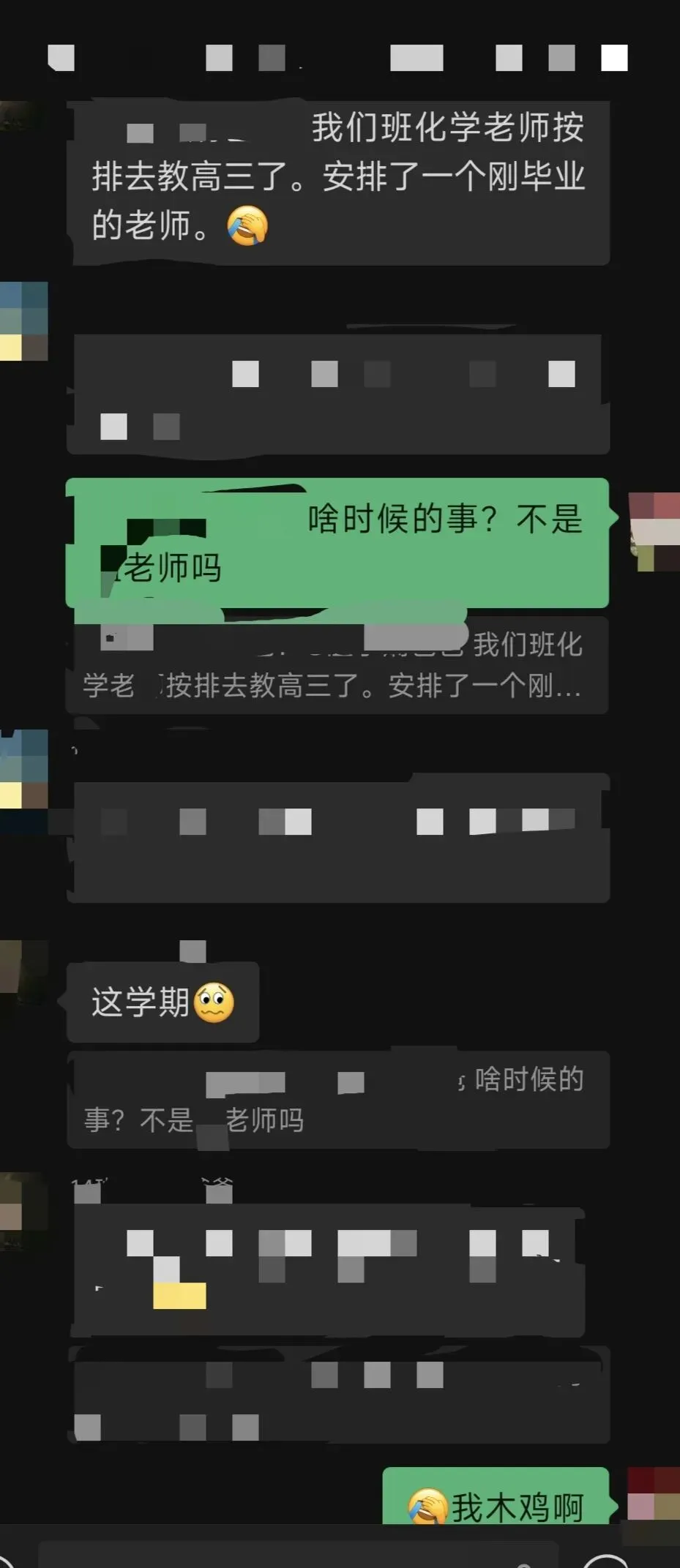 周一、周二、周三高中生们连续期末考试了三天,家长群就连续热闹了三天。