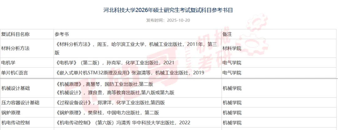 河北科技大学10月20日发布了2026年硕士研究生考试复试科目参考书目。