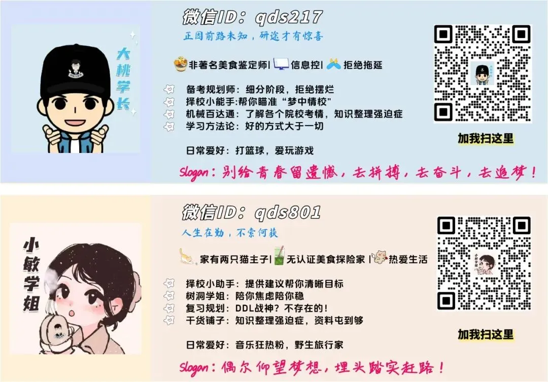 关于复试任何问题,都可以添加大桃学长(qds217)或小敏学姐(qds801)的微信进行咨询!