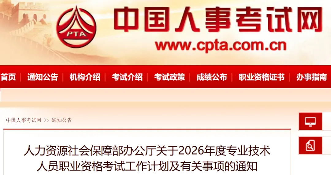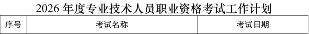 为切实做好专业技术人员职业资格考试规划与管理工作,方便广大专业技术人员参加职业资格考试,经征求有关部门同意,现就2026年度专业技术人员职业资格考试工作计划及有关事项通知如下: