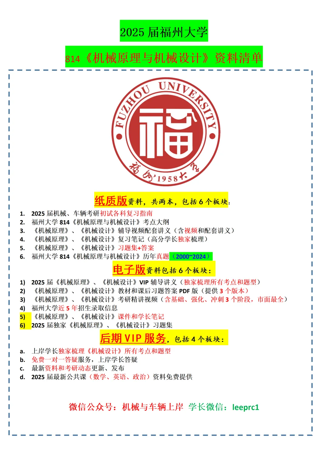 以上就是“福州大学考研之2025年硕士研究生入学考试专业课814机械原理与机械设计考试大纲”的全部内容。