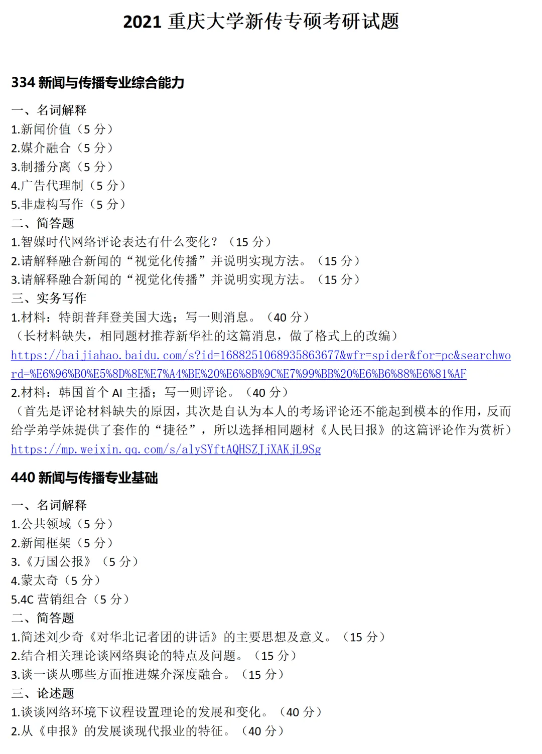 重庆大学新闻与传播考研真题2021