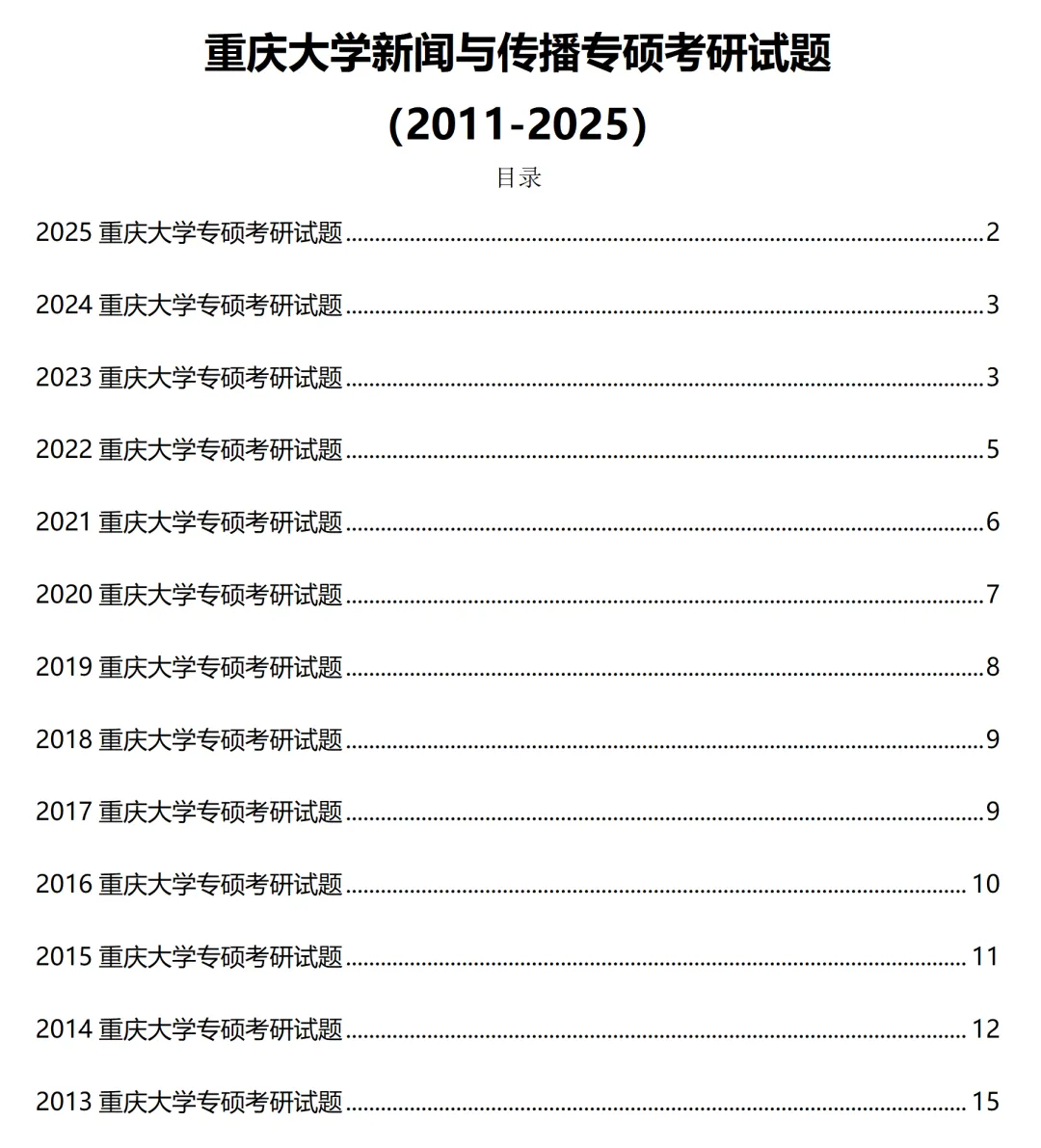 重庆大学新闻与传播2011-2025历年考研真题已整理好,可直接获取!