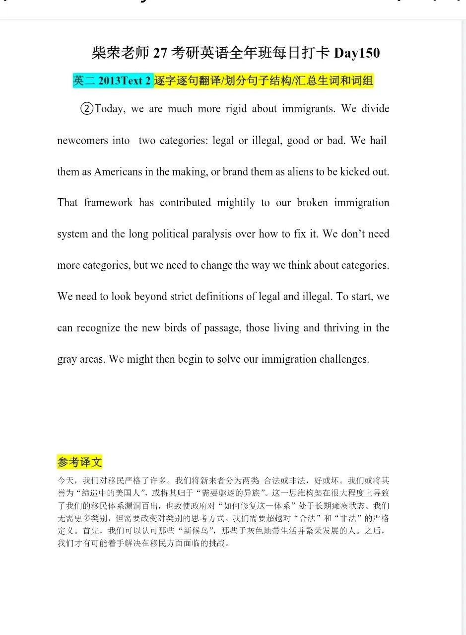 >27考研英语柴荣每日打卡day1-day150高清PDF