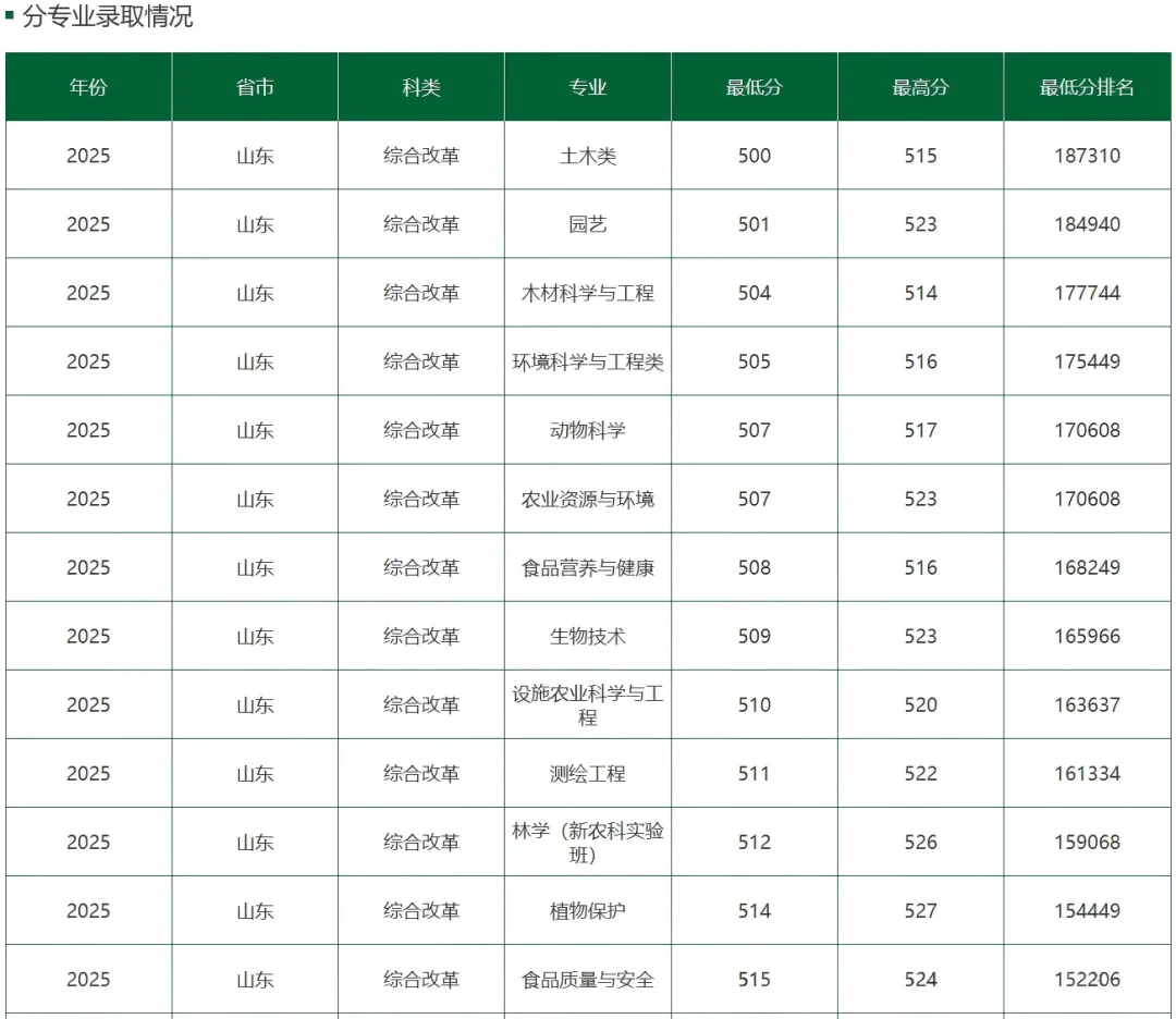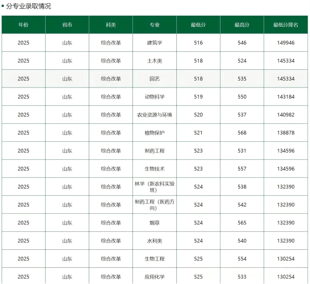 整体来看,山东农业大学2025年在山东省的录取情况呈现出生源质量稳步提升、高分段生源大幅增加、生源结构更加优化的良好态势。