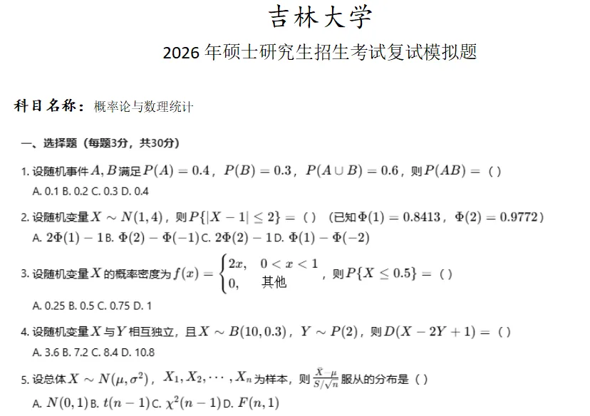 吉林大学概率论与数理统计考研复试真题模拟含答案