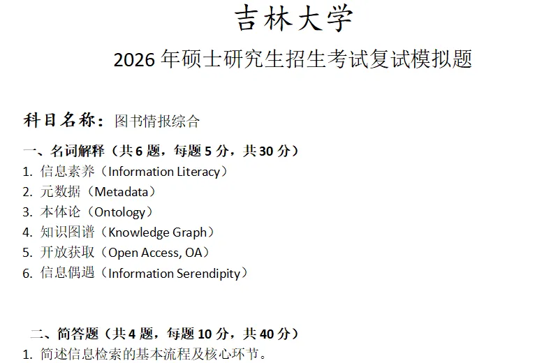 吉林大学图书情报综合考研复试真题模拟含答案