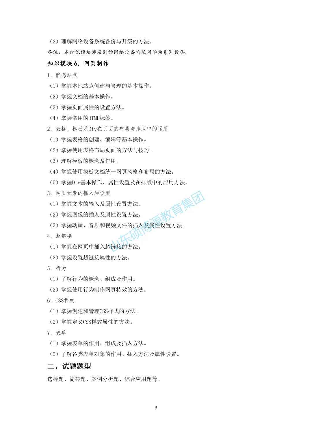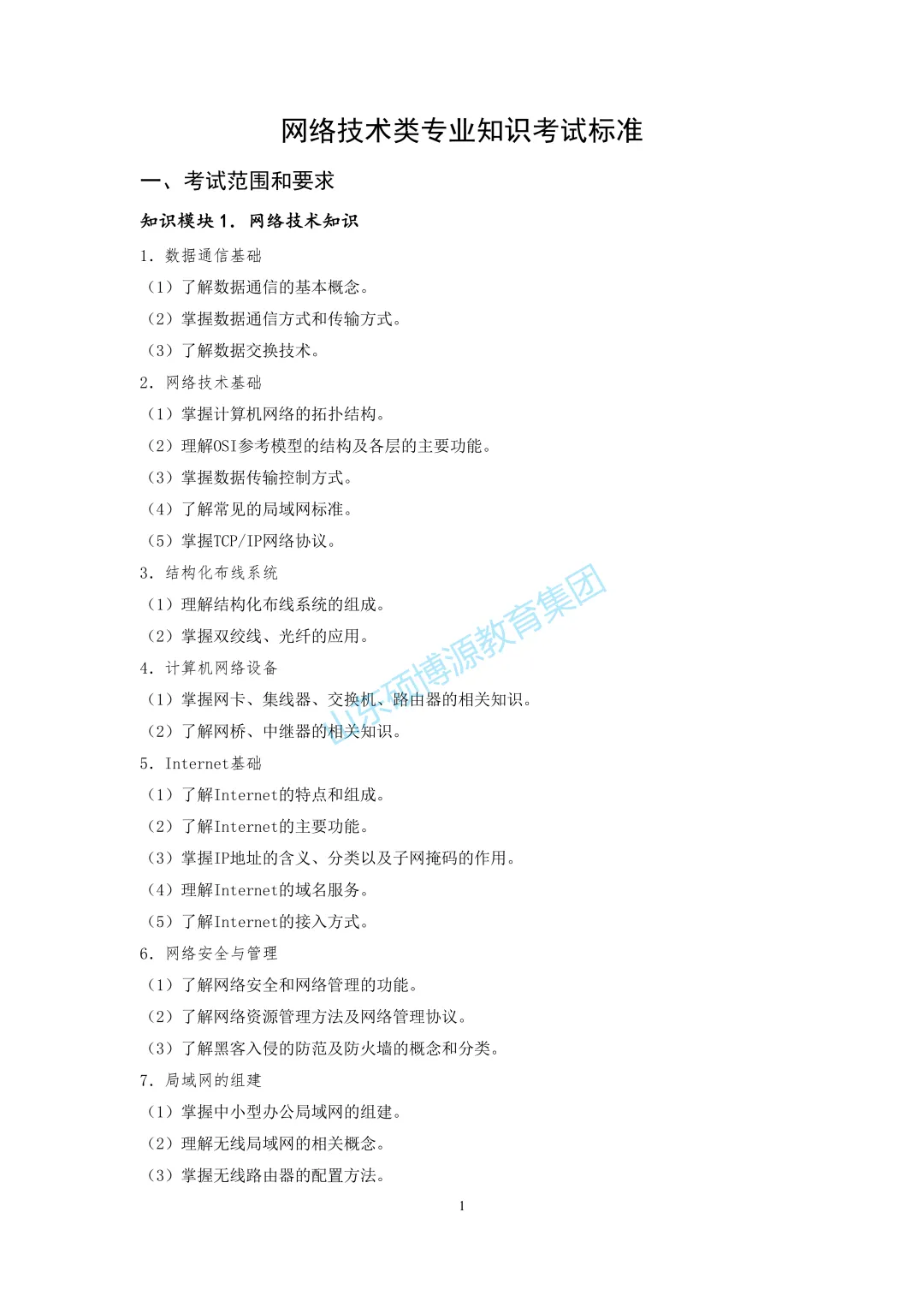 >网络技术类专业知识考试标准